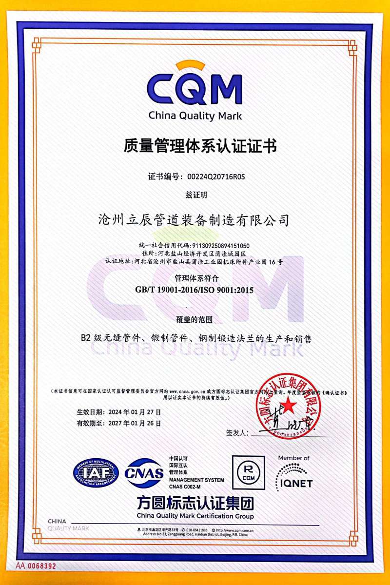 同步通過的ISO9001質(zhì)量管理體系認(rèn)證,則是對(duì)企業(yè)標(biāo)準(zhǔn)化、國際化管理能力的認(rèn)可。滄州立辰管道通過引入全過程質(zhì)量控制體系,從供應(yīng)商篩選到成品出廠實(shí)施精細(xì)化管控,確保每一件產(chǎn)品均符合國內(nèi)外嚴(yán)苛標(biāo)準(zhǔn),為客戶提供“零缺陷”產(chǎn)品體驗(yàn)。